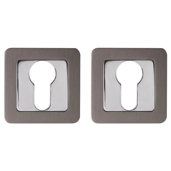 Накладки на квадратном основании Punto ET серии QR из коллекции SIMPLE LIVING под цилиндровый механизм, предназначены для декорирования замочной скважины. Материал изготовления: ZAMAK (сплав цинка, алюминия, магния и меди). Гальваническое покрытие прошло тест на устойчивость к коррозии в соляном тумане и соответствует 1 классу ГОСТ. Цвет: графит/хром. Крепежная фурнитура в комплекте.